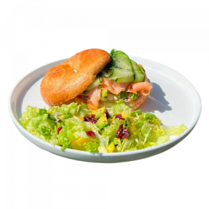 Carne de res (150 grs) ó pollo. Mostaza, lechuga, jitomate, pepinillos, cebolla morada, queso tipo americano. Acompañado de papas a la francesa.
