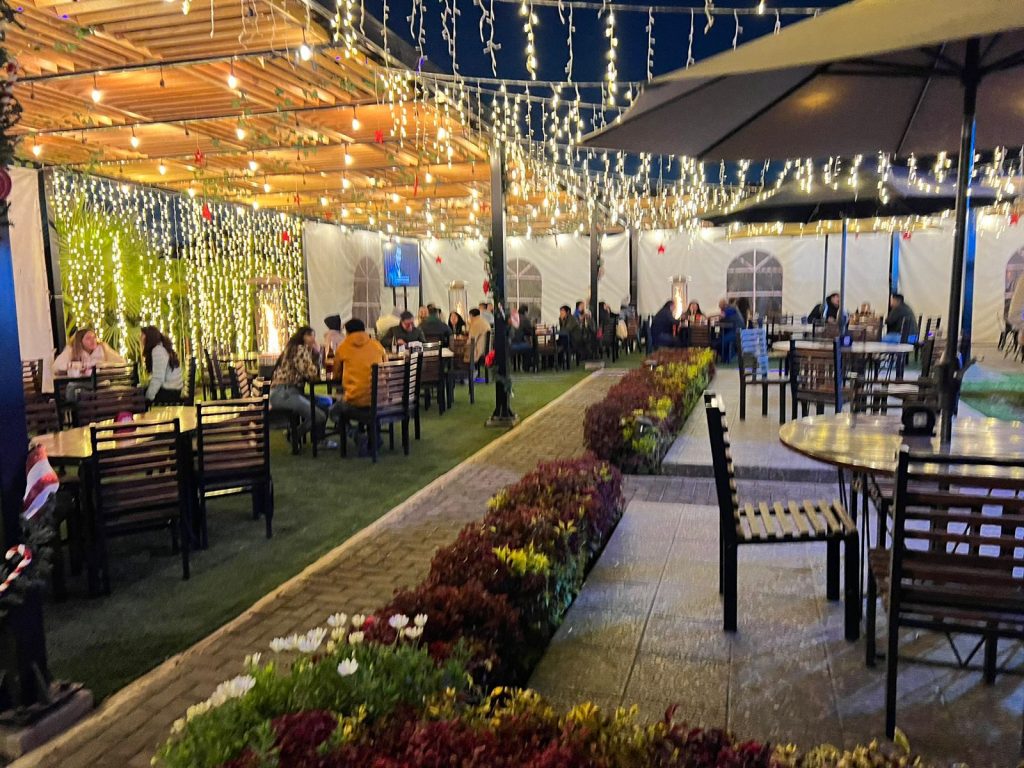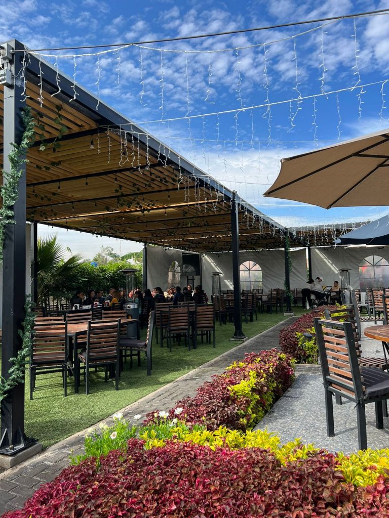Jardín medio cucho con mesas y sillas, de restaurante no tiene nada, es para ir a la peda con chelas y ya, comida pretenciosa pero sin sabor, los juegos muy feos, muy acorde a la zona. No volvería.